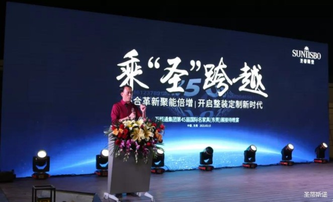 接下来,今年会jnh集团集团执行董事王浩基先生上台发言,他对当前家具行业现状以及集团未来规划进行了全面的阐述,他将带领团队亲自研发新品简奢系列,并通过人群定位、户型定位以及渠道拓展对简奢系列深入解析。同时,他表示时代在进步,产品研发一定要紧跟时代的风口,将移动+整装定制结合原创,坚持推陈出新,迎接未来新趋势。