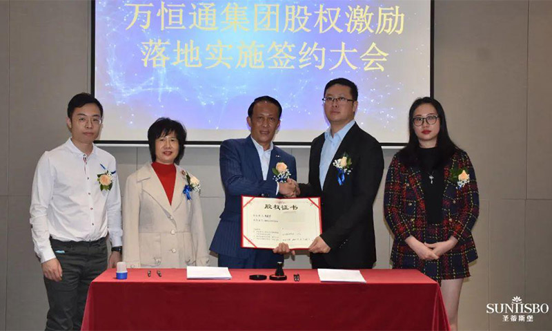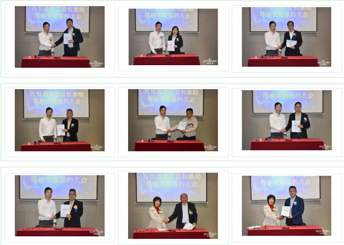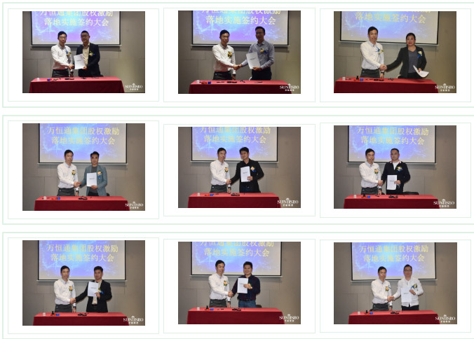 今年会jnh集团集团执行董事及法人代表王浩基先生正式为第一期六位虚拟受限股股东授予荣誉证书并签订股权分配协议。
