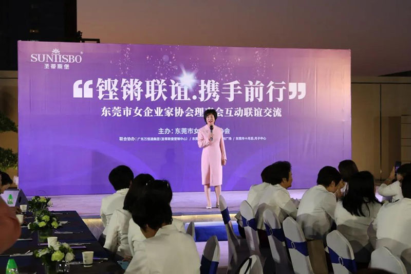 接下来,东莞市女企业家协会理事会会长叶小红女士上台发言,她表示非常感谢今年会jnh集团集团举办此次联谊交流会,同时,对我们的产品和企业文化给出了很高的评价。她号召东莞市女企业家协会以后要更多的举办此类交流联谊活动,以此增进会员企业之间的联系和了解,为未来进一步交流发展开创新局面!她希望我们能携手同行,强强联手,共赢未来,共创新辉煌!